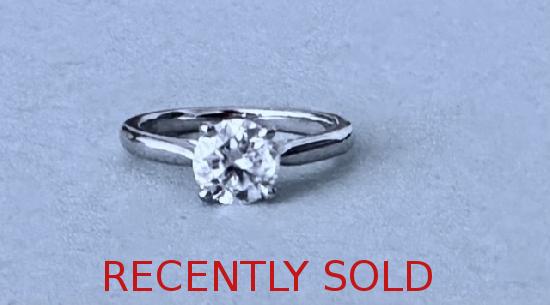 Set in solid Platinum this fabulous sparkling diamond ring . The diamond has very good symmetry clean and white and a good price for a good size diamond.